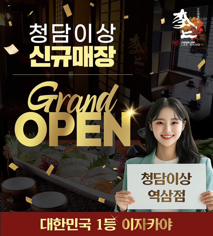 Notice 리코플레이트, 그릭요거트 '요커' 론칭.... 자세히 + Media '김영란법 3만원→5만원 상향' 프랜차이... 자세히 + 대한민국 No.1 프리미엄 요리전문점 청담이상! 다양한 영상을 확인하세요! 알아보기+